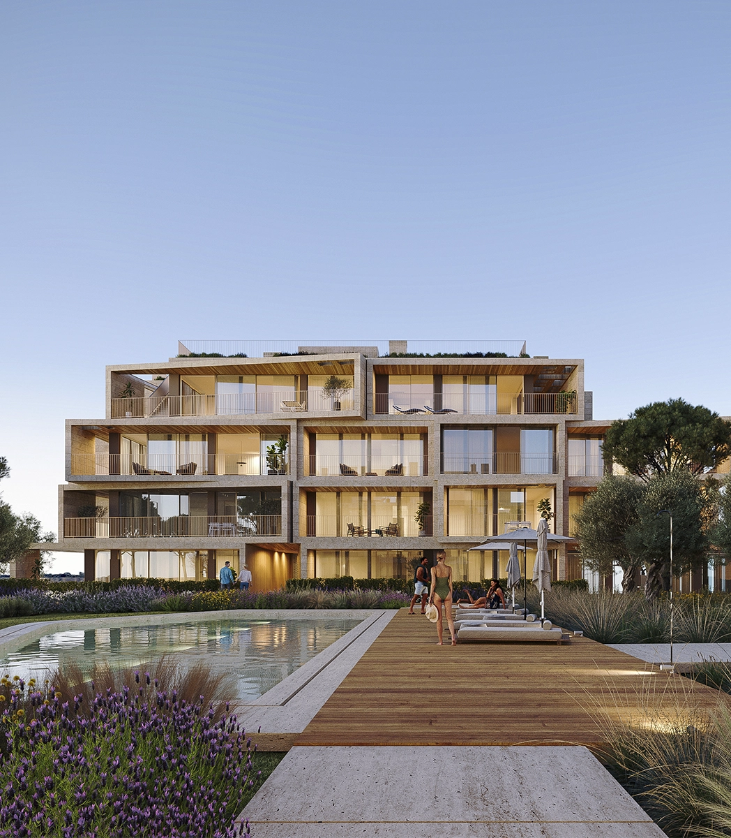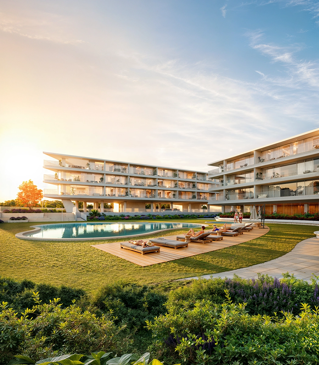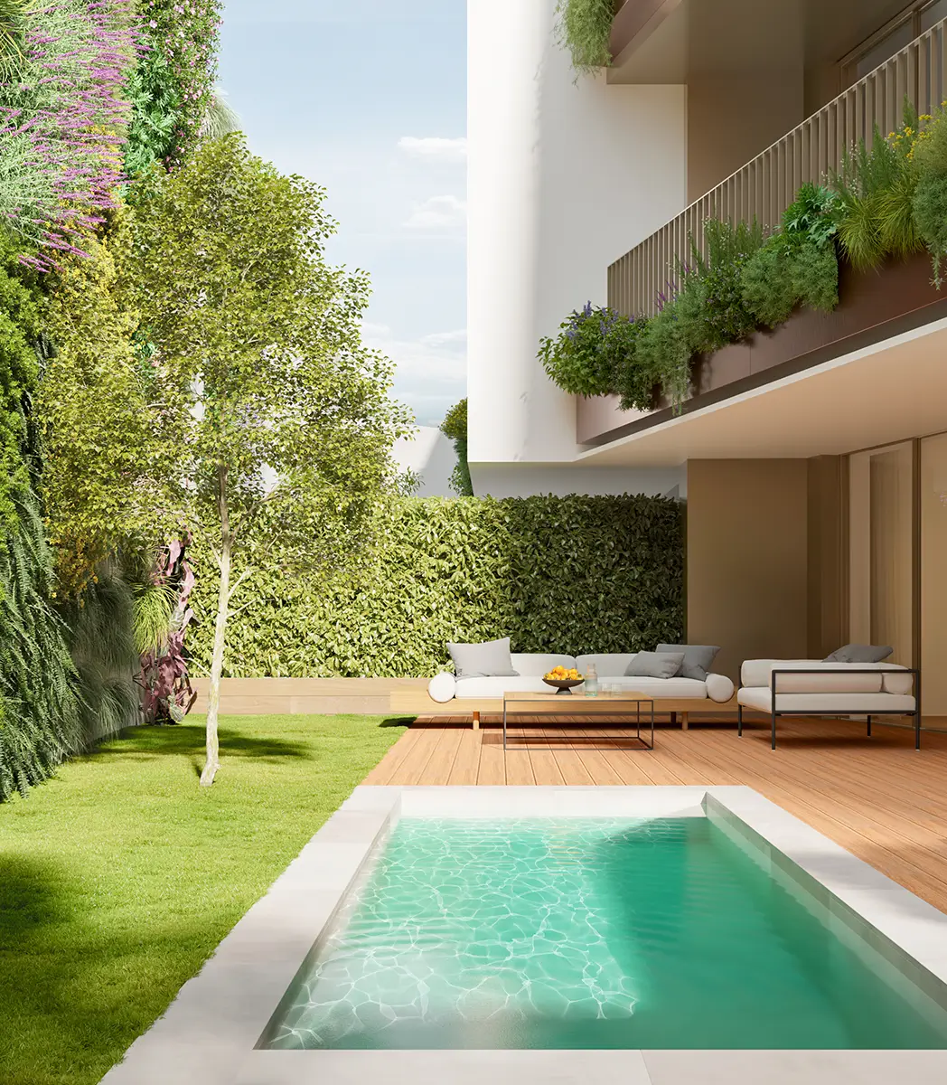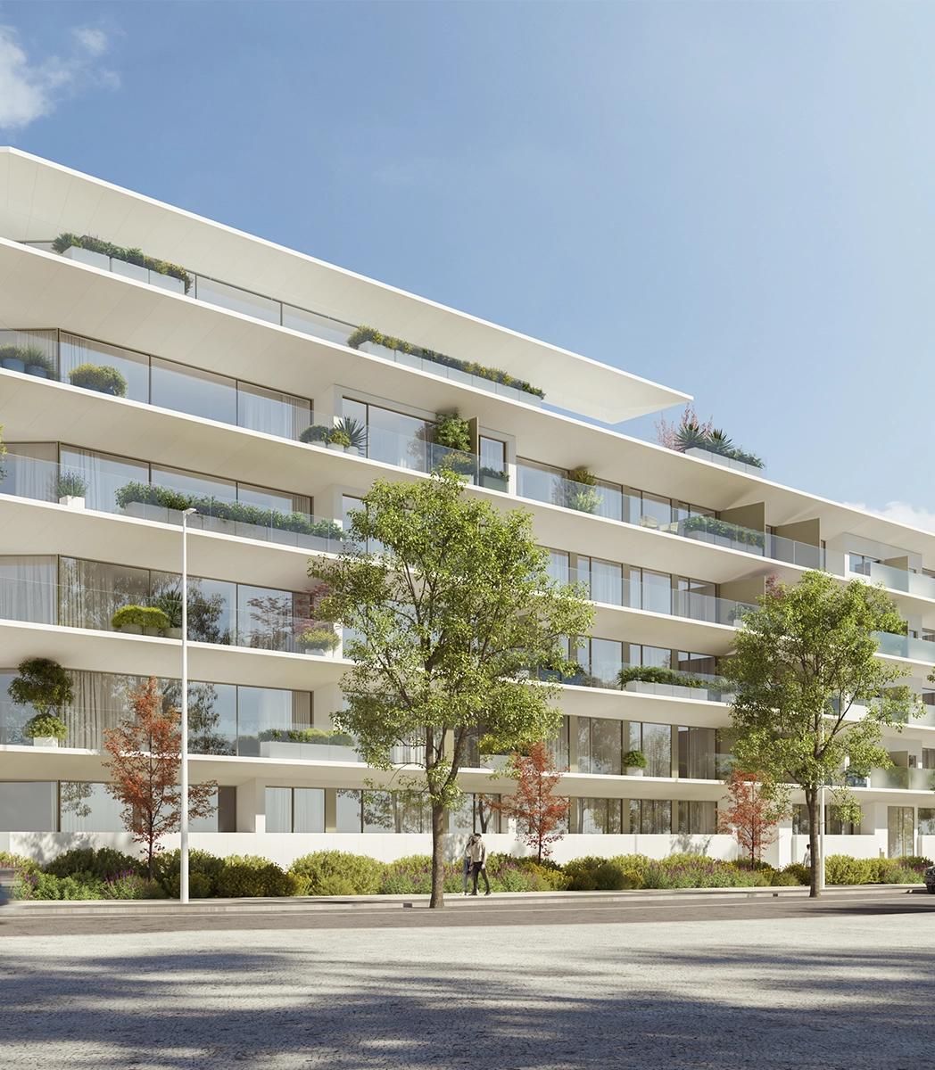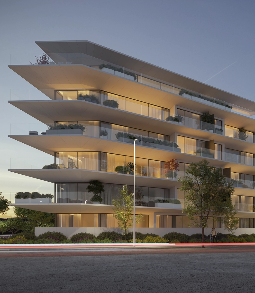 Os nossos projetos consideram tipologias T1 a T5 Penthouse, com amplas àreas exteriores, jardins privativos, varandas, rooftops e piscinas privativas.